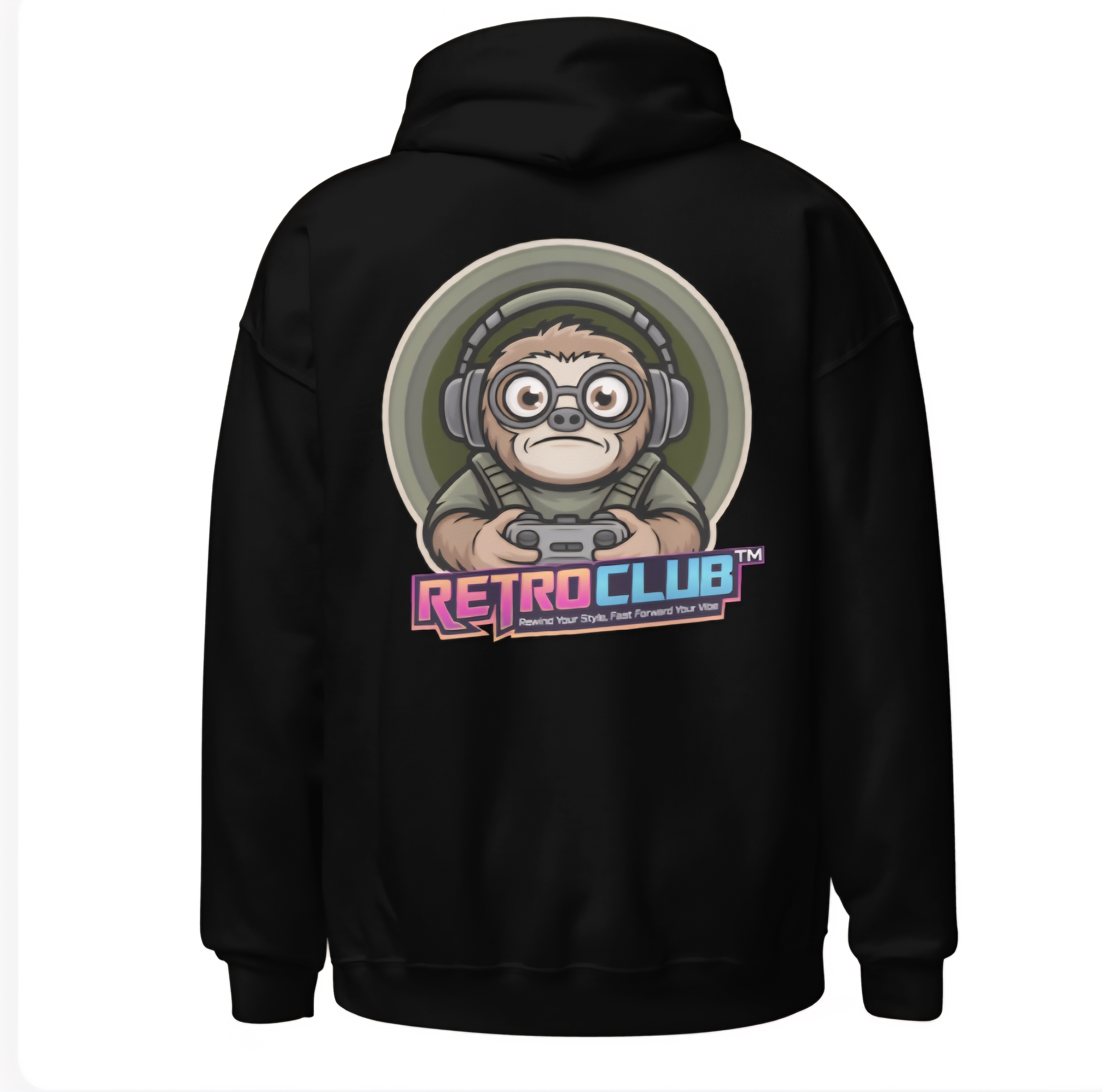 Upgrade your wardrobe with this stylish Retro Club Gamer Sloth hoodie, designed for comfort, personality, and everyday wear. This black pullover hoodie features a fun and eye-catching gamer sloth graphic on the back making it the perfect choice for the holiday season or anyone who loves unique streetwear.