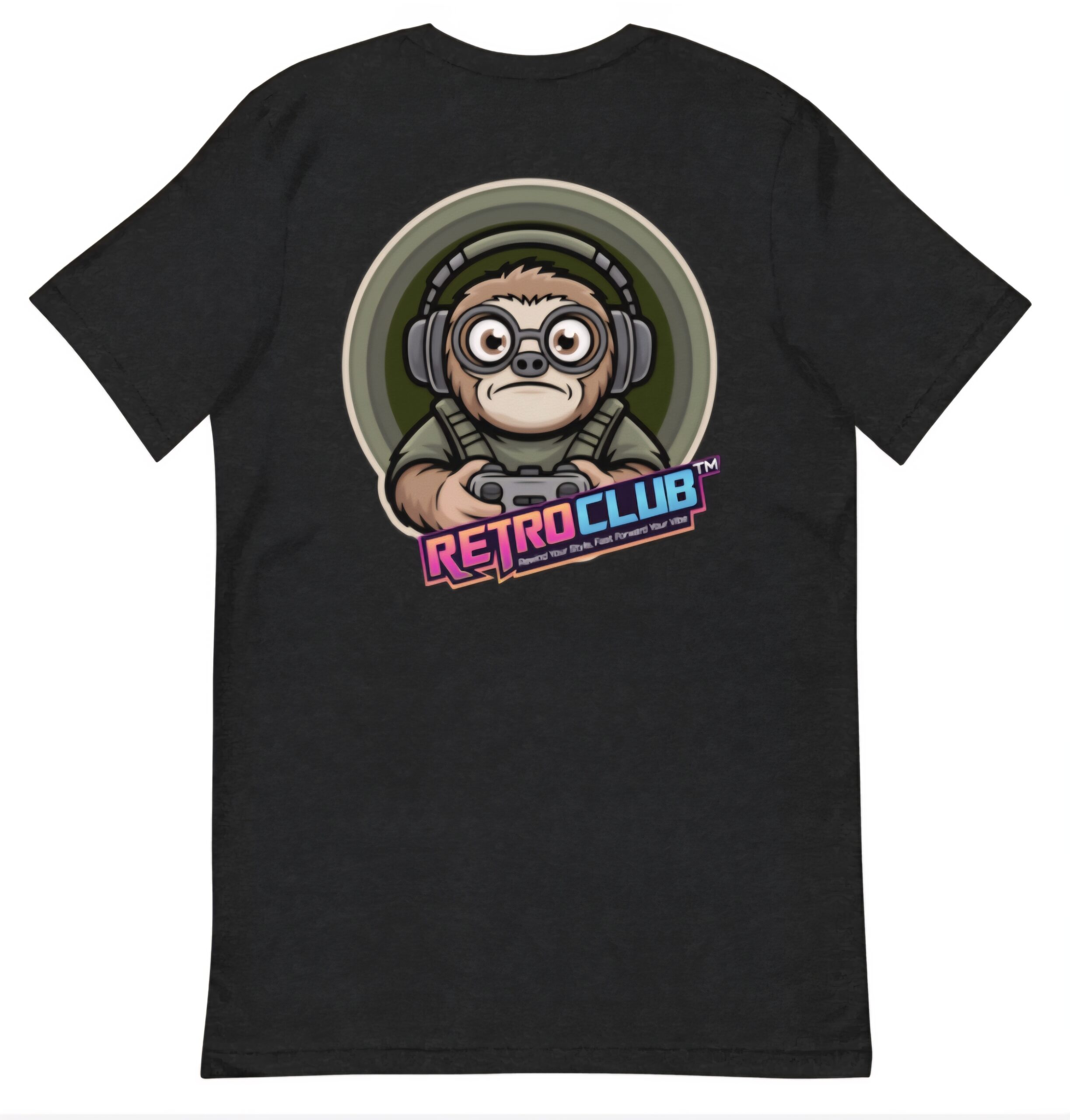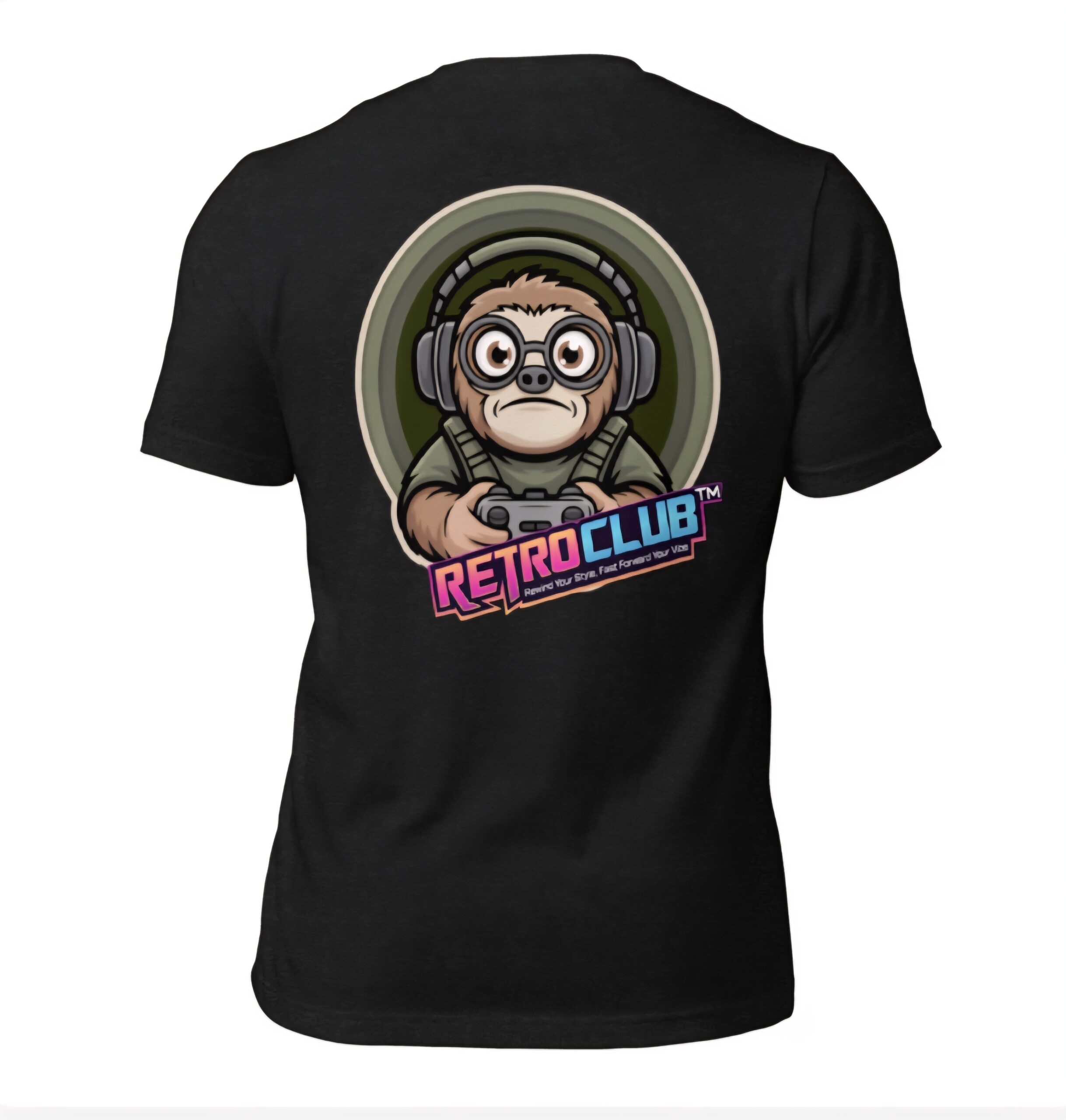 Upgrade your wardrobe with this stylish Retro Club Gamer Sloth Tee, designed for comfort, personality, and everyday wear. This black pullover hoodie features a fun and eye-catching gamer sloth graphic on the back making it the perfect choice for the holiday season or anyone who loves unique streetwear.