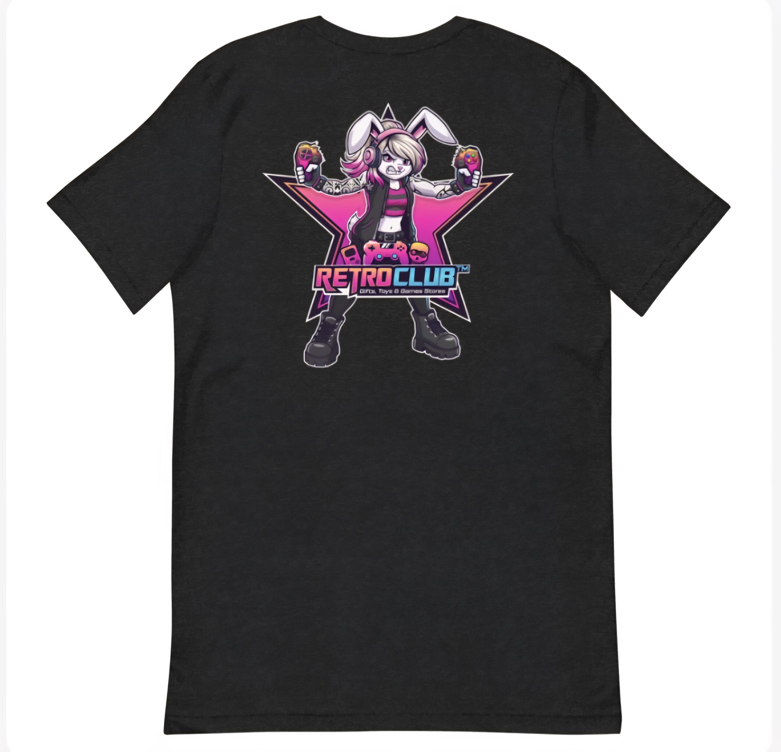 Upgrade your wardrobe with this stylish Retro Club Angry Rabbit Tee, designed for comfort, personality, and everyday wear. This black pullover hoodie features a fun and eye-catching gamer Rabbit graphic on the back making it the perfect choice for any weather or anyone who loves unique streetwear.